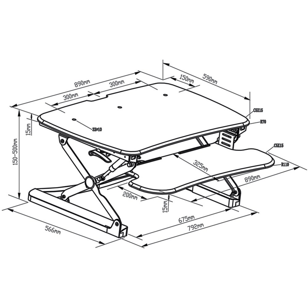 Sylex Arise Deskalator Sit-Stand Riser 890W x 590D x 150-500mmH Black
