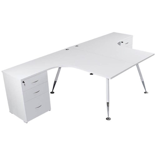 Sylex Fleet Corner Workstation + Pedestal 2 Person 3000W x 1500D x 700mmH White