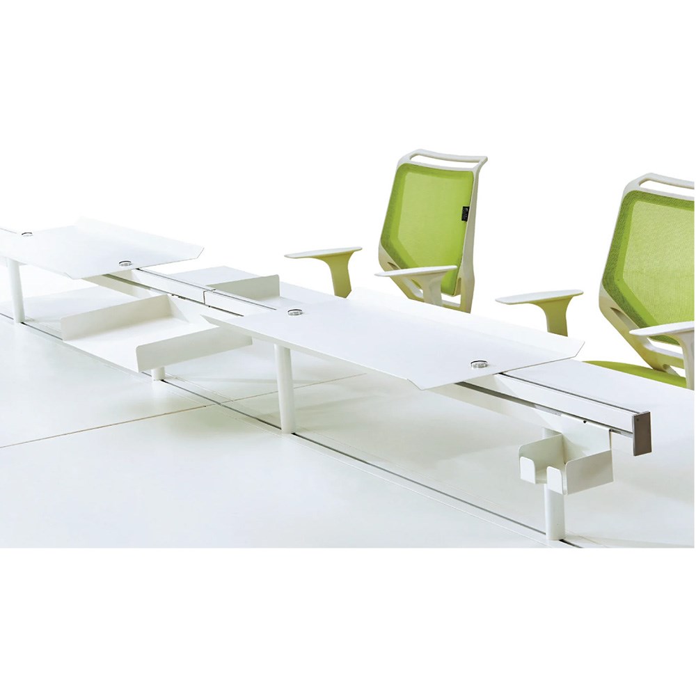 If space is tight don't extend, go up. Get things off your desktop and onto the Fleet Tool Rail. Each tool rail comes with a fixed line and / or mobile phone tray, paper trays and utility cup. Double sided for use on one or both desktops on a 2 or 4 person Fleet desk configuration. 10 Year Manufacturer's Warranty. Delivery, installation and assembly charges may apply to furniture. Please enquire to confirm.