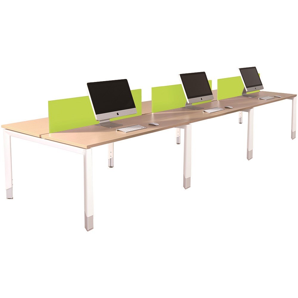 Snow Maple top and White frame. Overall Dimensions: 4500W x 1500D x 620-920mmH. Offers both style and functionality with the option to convert a creative, open workspace into private work desks with the addition of divider screens. 10 Year Manufacturer's Warranty. Delivery, installation and assembly charges may apply to furniture. Please enquire to confirm.
