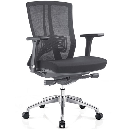 510W x 490D x440-520mmH. Gas lift rise: 80mm. Gas lift height adjustable. Horizontal seat adjustment. Adjustable seat depth. Simultaneous back and seat tilt. Adjustable lumbar support. Heavy duty 5-star metal base. Soft wheel castors. Fabric seat and mesh back. Vertical, horizontal and rotationally adjustable arms sold separately. 10 Year Manufacturer's Warranty. Delivery, installation and assembly charges may apply to furniture. Please enquire to confirm.