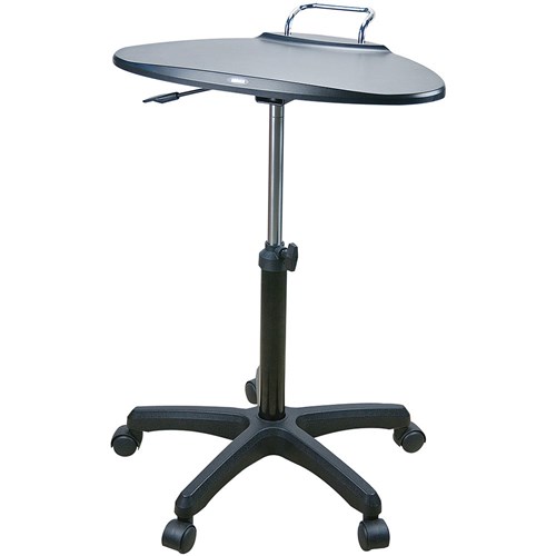 Includes mouse tray and cup holder. A single lever gas assist height adjustable polypropylene platform large enough to suit a 17-inch laptop. Retractable mouse pad and cup holder. Locking castors. Two handles for easy movability. Extra-wide starship base for maximum stability. 10 Year Manufacturer's Warranty. Delivery, installation and assembly charges may apply to furniture. Please enquire to confirm.