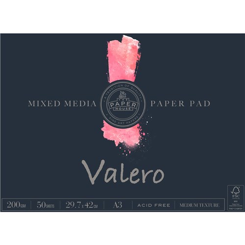The Paper House Valero Pad A3 200gsm Mixed Media 50 Sheet