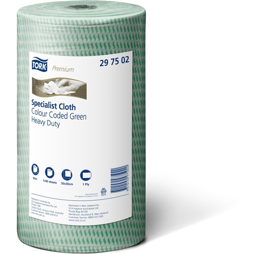 Tork Heavy Duty Cleaning Cloth Roll 45m 90 Sheets Green Carton Of 4