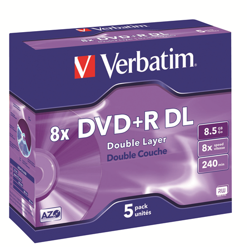 Verbatim Recordable DVD+R 240Min 8.5GB 8X Double Layer Jewel Case
