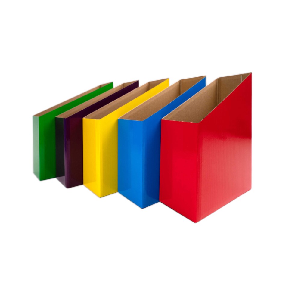 Magazine book boxes are the ideal size and colours for PM Reading level organisation, or for general book and paper storage. Easy to fold together and assemble. It includes: 1 x Blue, 1 x Red, 1 x Yellow, 1 x Green and 1 x Purple. Box Size: 90W x 250D x 280mmH (Back), 170mmH (front).