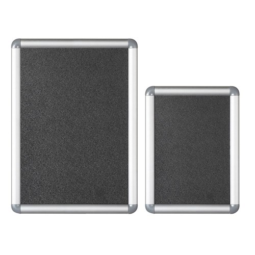 Overall Size: 250W x 10D x 338mmH. Poster Size: 210W x 297mmH. Visible Size: 200W x 288mmH. 25mm alloy frame, with rounded light grey moulded corners. Quick and easy changing of printed information. Fantastic for offices to display important information or temporary notices. Glare free PVC clear front cover lenses. Holes are predrilled. Front opening with cover sheet. Also available in sizes to fit A3, A2 or A1 posters.