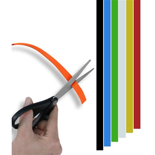 Magnetic Strips with a writable surface - the perfect blend of functionality and creativity for your whiteboards and metal surfaces. Elevate your classroom with a range of colorful magnetic solutions designed to bring a pop of color to any space. Can be cut to any shape with a sharp knife or scissors to suite your special requirements and can be written on with permanent or water based markers. Magnetic backing, writable front surface. Strips are 300mm long and are also available in widths of 13mm, 19mm and 25mm. Also available in Black, Blue, Green, White, Yellow, Red and Orange.