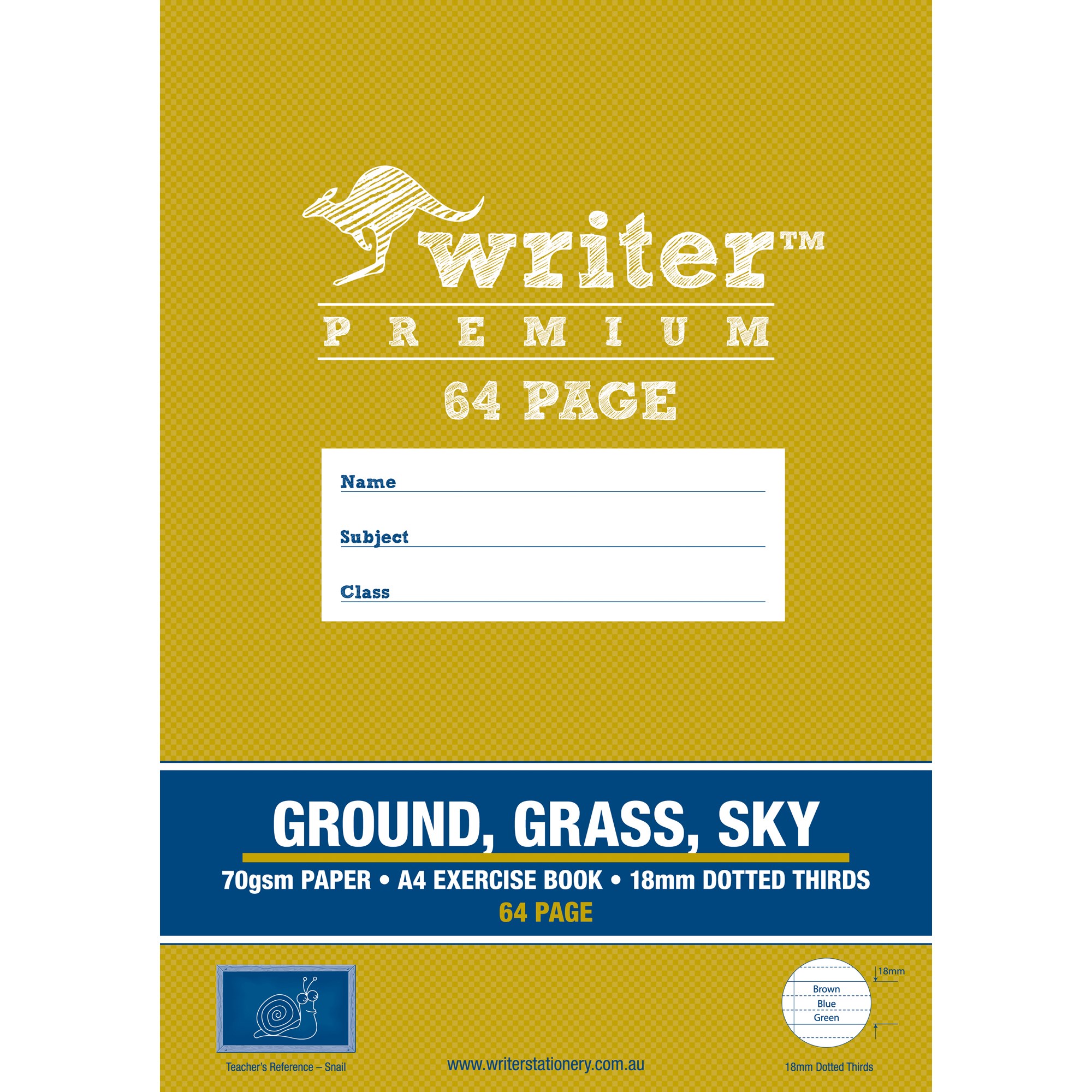 Writer Premium Exercise Book Ground Grass Sky A4 64 Page 18mm Dotted Thirds-Snail
