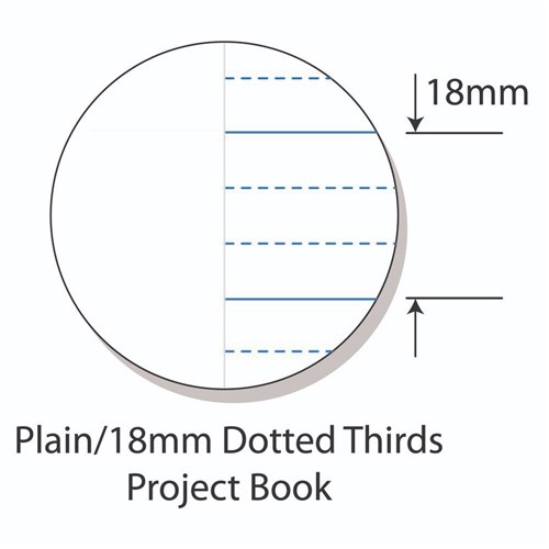 Feature heavy duty covers, high quality white 70gsm paper with blue dotted thirds ruled lines and a red margin. Teachers reference Key. Board cover.