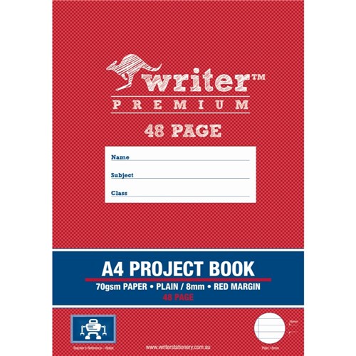 • Writer premium exercise books feature heavy duty covers, high quality white 70gsm paper with 8mm ruled lines and a red margin on one side and plain page on the other..
