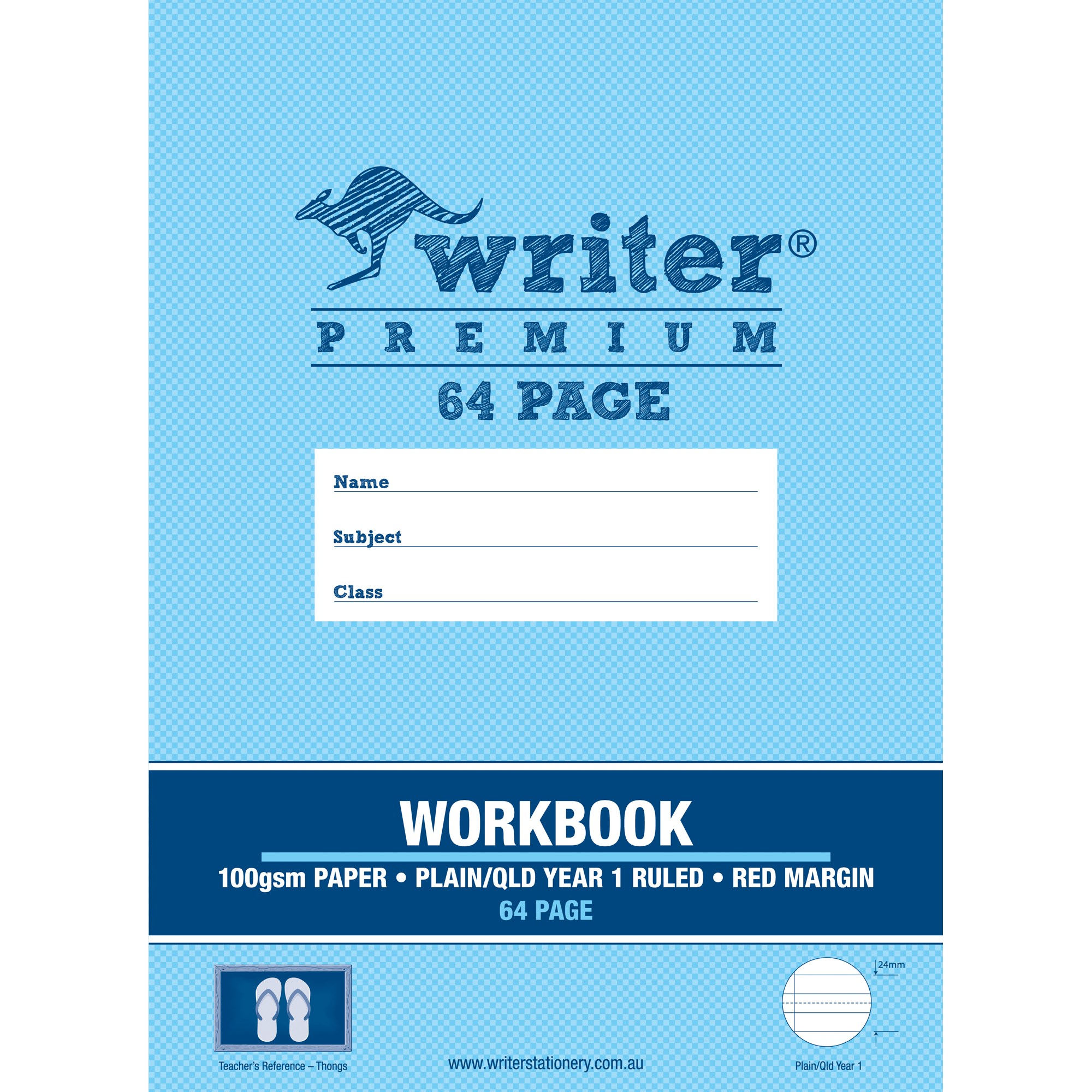 Writer Premium Workbook 330x245mm 64Pg Plain 1 Side/QLD Year 1 Ruled Thongs