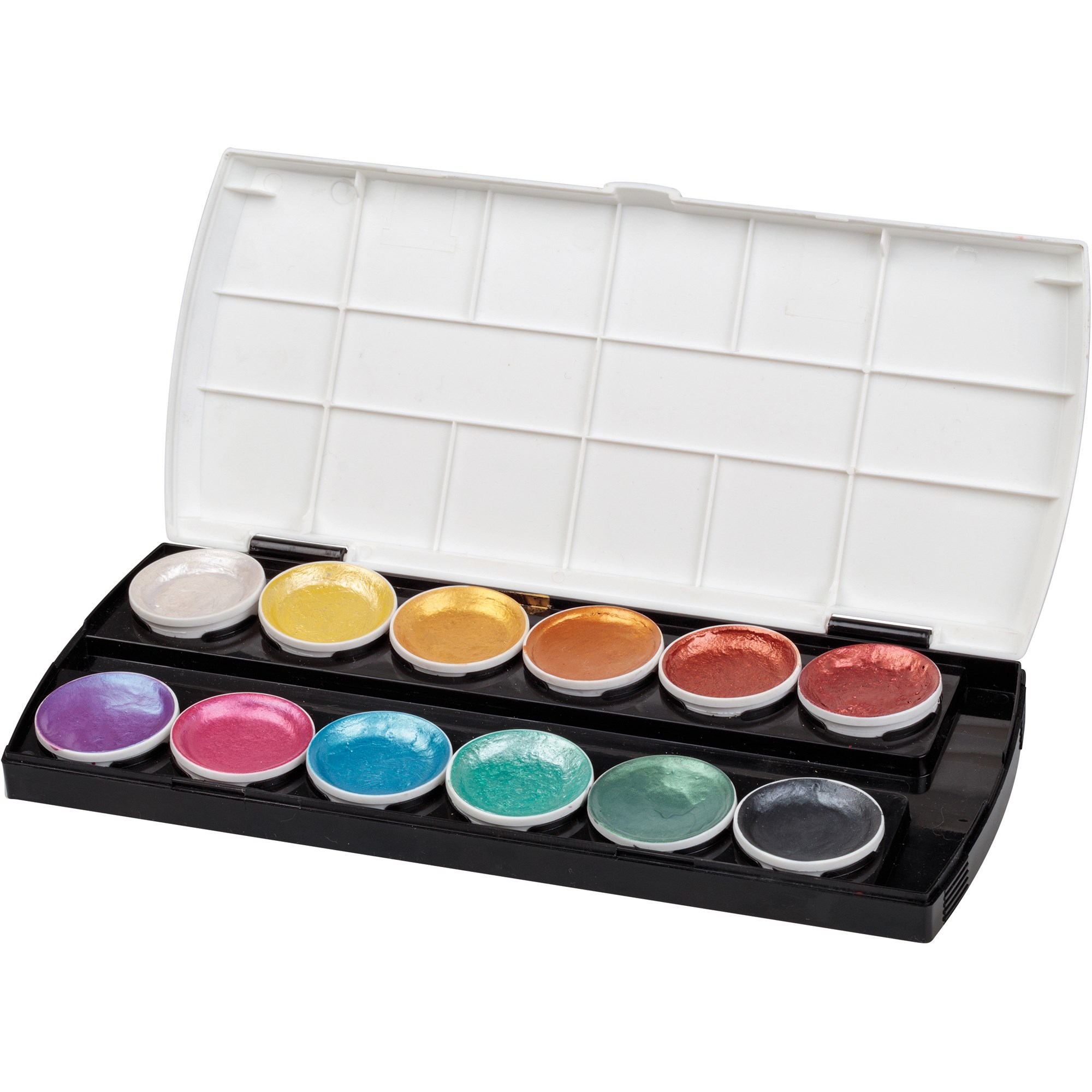 • Vibrant metallic pigments in semi-moist watercolour pans ? just add water.