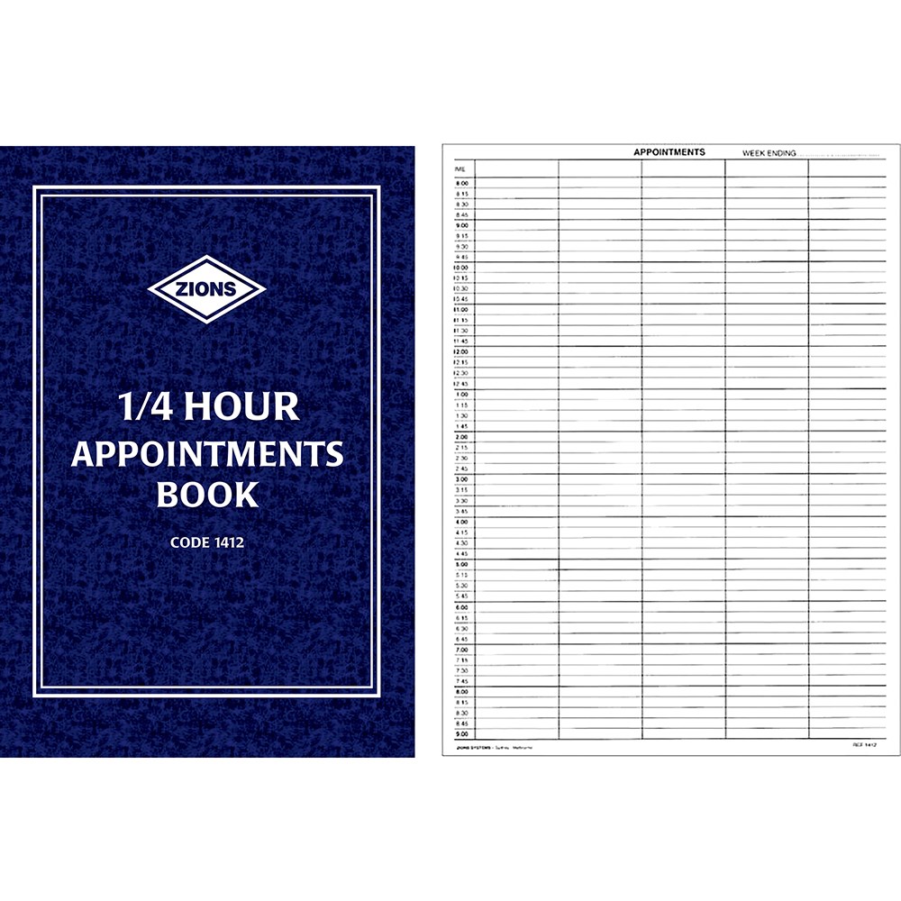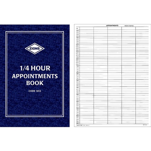 Zions 1412 Appointment Book A4 1/4Hr 8am to 9pm 192 Page
