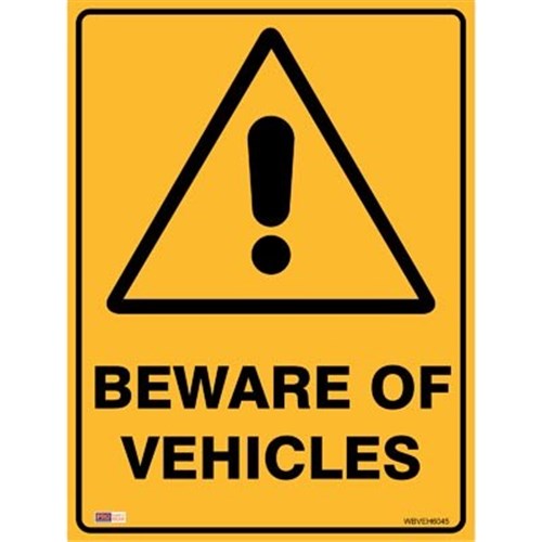 Zions Warning Sign Beware Of Vehicles 450x600mm Metal