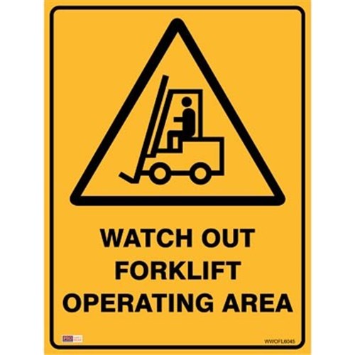 Zions Warning Sign Watch Out Forklift 450x600mm Polypropylene